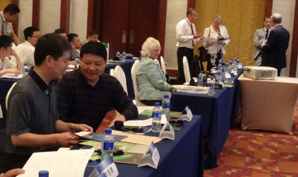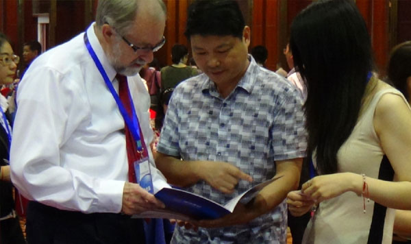 復合保溫砌塊的12大優勢引起了國外專家的濃厚興趣,圖為美國建筑節能研究專家羅伯特先生,特意向謝總請教并表達了技術合作愿望